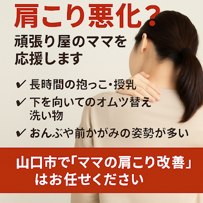 📍 山口市で「ママの肩こり改善」をお探しなら ご予約・ご相談はお気軽にどうぞ!